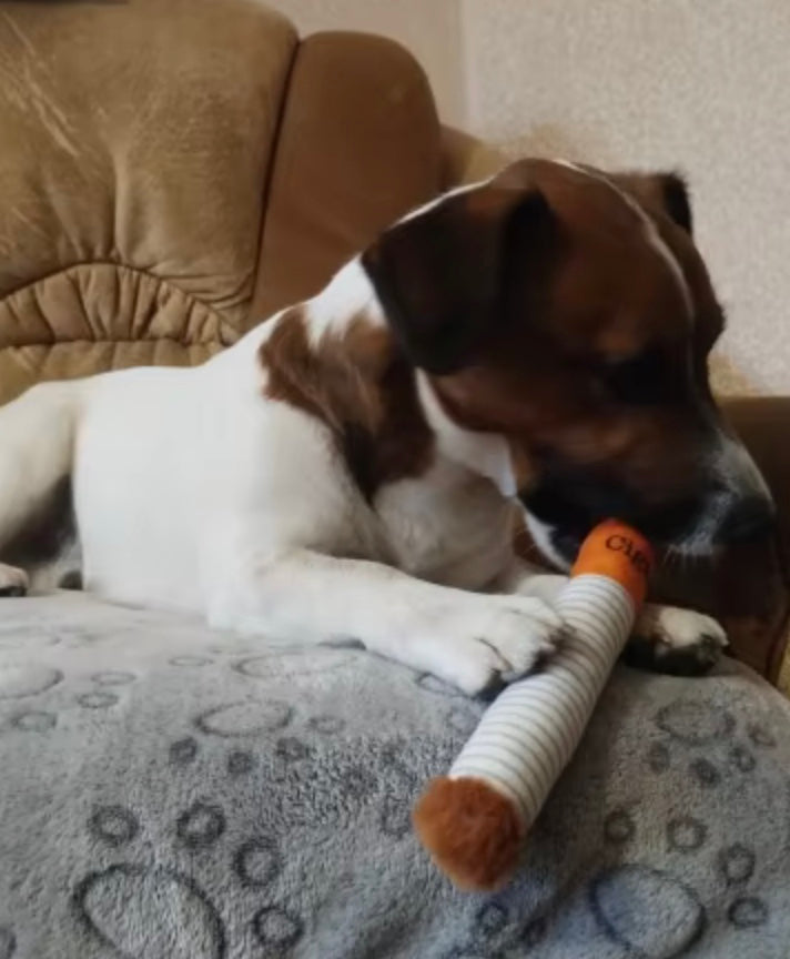 Each dog cigarette toy is handmade using soft, pet-safe cotton fabric and premium non-toxic stuffing.